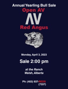 Annual Yearling Bull Sale Monday, April 3, 2023 Ph: (403) 937- REDS (7337) Sale 2:00 pm at the Ranch Walsh, Alberta Open AV Red Angus